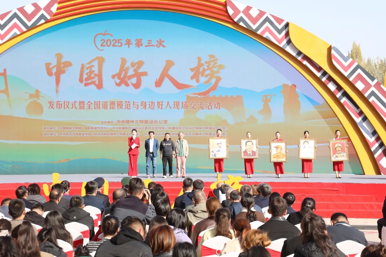 十月的新疆,魅力无限。2025年第三次“中国好人榜”发布仪式暨全国道德模范与身边好人现场交流活动10月15日在新疆阿克苏市多浪河水韵广场举办。