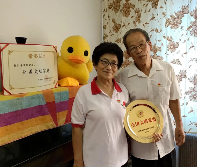 2016年,唐革军的名字刷爆了辽阳的微信朋友圈,她的家庭入选第一届“全国文明家庭”。让很多认识和了解她的人感到兴奋和自豪。但对她本人来说,这更是一种激励,她要和老伴儿一起,继续把公益做好,一如过去的几十年。
