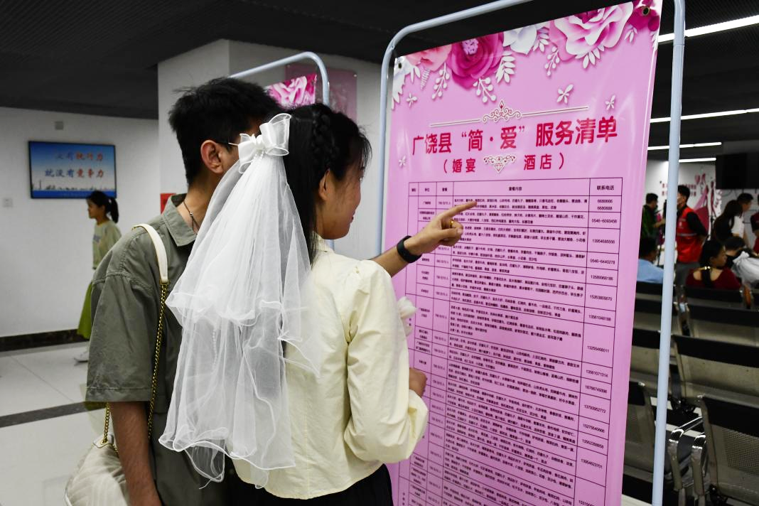 为了让“一个不高于,三个不超过”喜事新办标准更好地融入婚嫁领域全过程、各环节,广饶县组织县内婚庆公司、婚宴酒店召开工作推进会议,动员婚庆公司、婚宴酒店控制婚庆服务、婚宴消费标准,举办简约适度、文明健康的婚俗礼仪,推出简约、实惠、有特色的“乐安喜宴菜单”,引导婚礼降价不降爱,简约不简单。同时,创新出台“简·爱”清单服务项目,将推行不超过10000元的婚庆服务套餐的婚庆公司和每桌不超过800元的婚宴套餐的酒店,纳入“简·爱”服务清单,实行动态管理,在婚姻登记大厅予以公示,供新婚当事人参考,为群众选择平价套餐提供便利。据初步统计,70%的新人自主选择了“简·爱”清单,每年可节省婚庆和婚宴开支3000余万元。