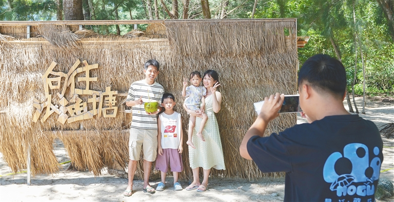 游客在昌江黎族自治县海尾镇沙渔塘社区打卡拍照。海南日报全媒体记者 陈元才 摄