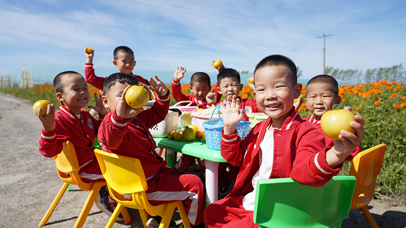虎林市教育中心幼儿园到乡村振兴产业园开展研学活动。庆丰农场供图